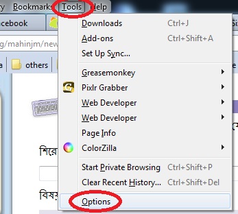 ১ । প্রথমে menu হতে tools এ ক্লিক করুন । এরপর options এ ক্লিক করুন ।